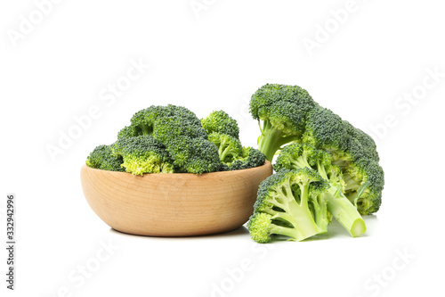 Bowl with broccoli isolated on white background. Fresh vegetable