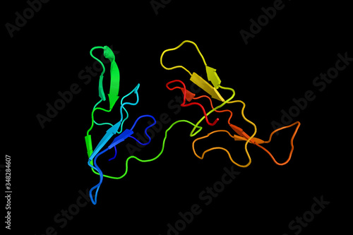 Bowman–Birk protease inhibitor. Proteins of this family interact with the enzymes they inhibit via an exposed surface loop that adopts the canonical proteinase inhibitory conformation. 3d rendering