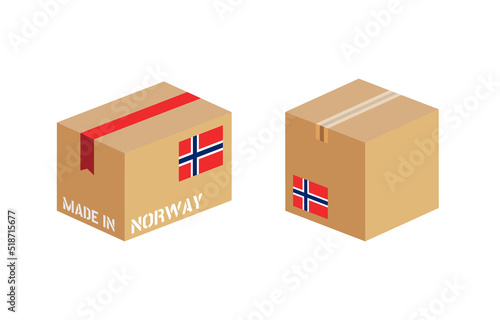 box with Norway flag icon set, cardboard delivery package made in Norway