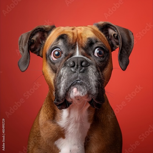 Boxer dog on minimalistic colorful background with Copy Space. Perfect for banners, veterinary ads, pet food promotions, and minimalist designs.