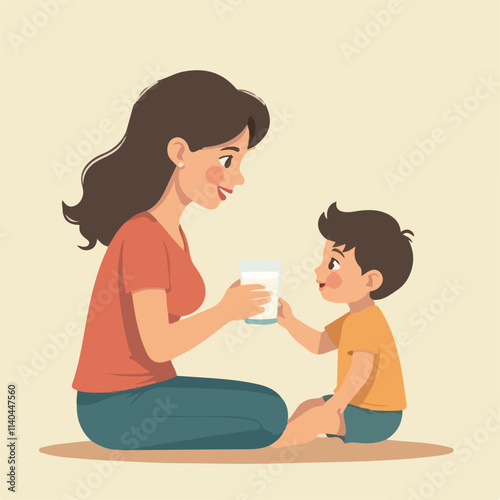 Boy drinking milk illustration vector design, Mother Gives Milk vector design