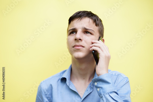 boy is talking on a mobile phone