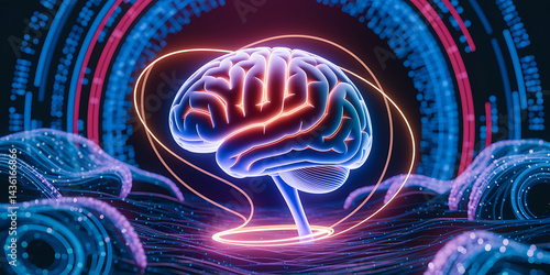 Brain illuminated by digital network. Neural pathways. Abstract technology.