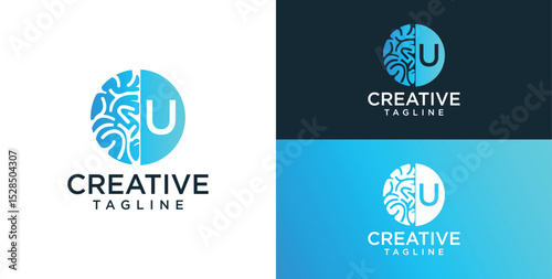 Brain Logo, combination of brain and initial letter U, flat design logo template, vector illustration