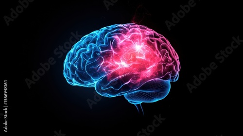 Brain Medical scan of a human brain with highlighted neural activity regions.