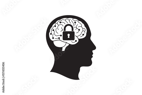 Brain Security Lock Silhouette Vector Human Head Privacy Protection Icon