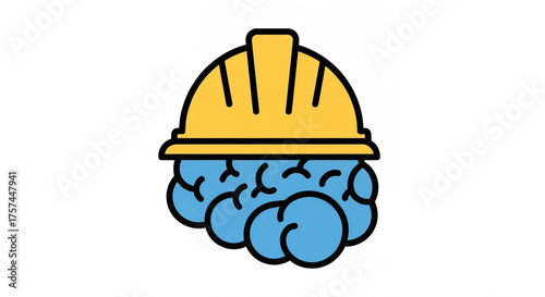 Brain Wearing a Construction Hard Hat for Safe Idea Building and Mental Work