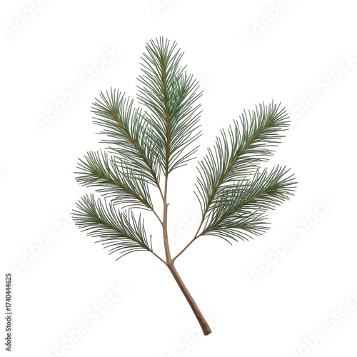 Branch with green needles. Detailed close-up of a coniferous evergreen