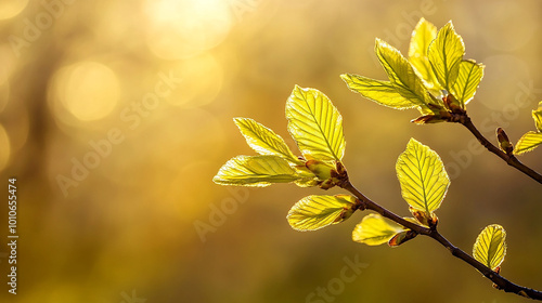 branch with sunlit leaves closeup nature background