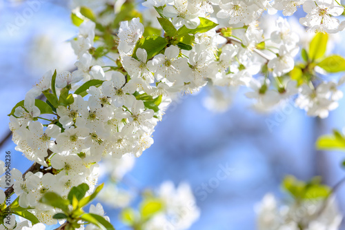 Branches of beautiful blossoming tree on sunny day