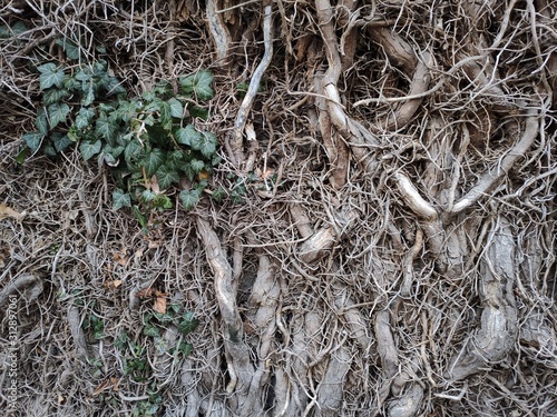 branches of ivy weaving along the wall with a small inclusion of leaves