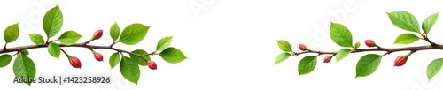 Branches with buds and leaves isolated on white background, growth, botanical, leaves