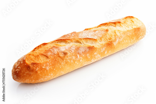 bread baguette with crispy crust close-up on a white background