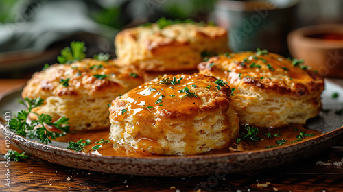 breads with honey in plate
