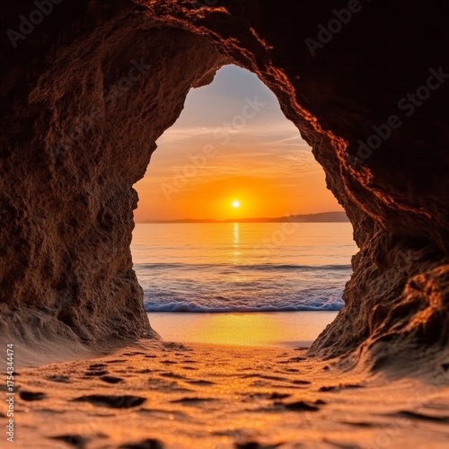 Breathtaking Coastal Sunset with Vibrant Colors and Dramatic Rock Formation Over Serene Ocean Waves