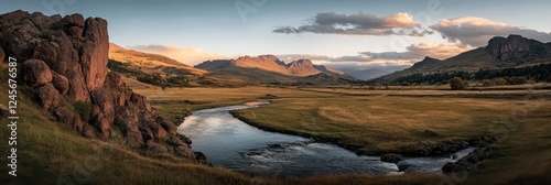 Breathtaking Mountain Landscape at Sunset with Calm River Reflections