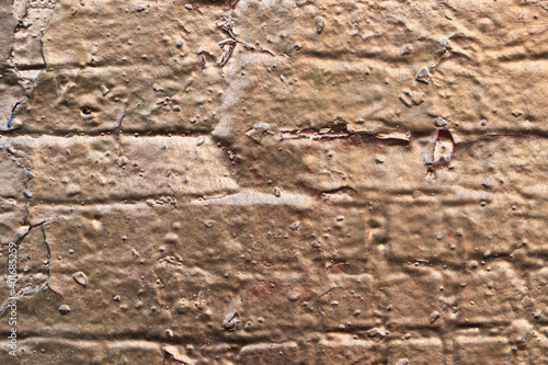 Brick wall covered with gold paint. Empty background. Close-up.
