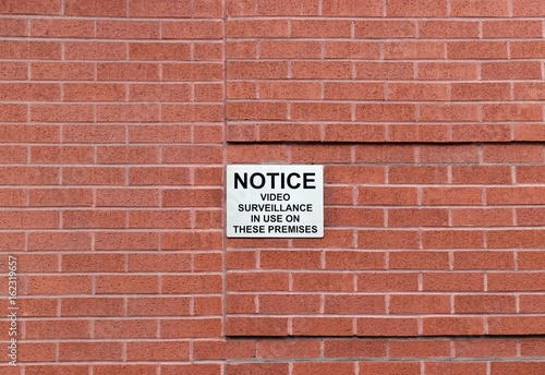 Brick wall with surveillance notice sign