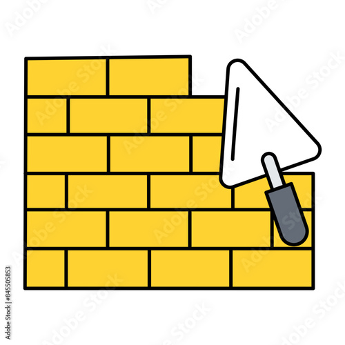 bricklayer with masonry Trowel concept, Wall Construction with Stonemason vector outline design, Industrial EquipmentSymbol, 1st of May Sign, International Workers Day stock illustration