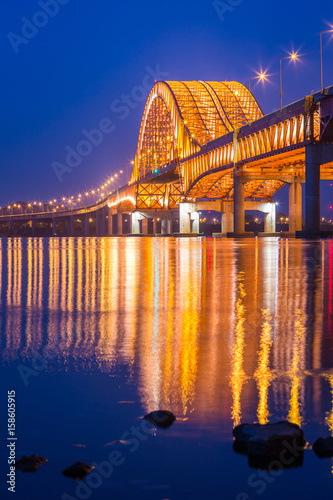 Bridge of Seoul Banghwa bridge beautiful Han river at night, Seoul, South Korea.
