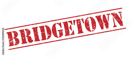 bridgetown red stamp on white background