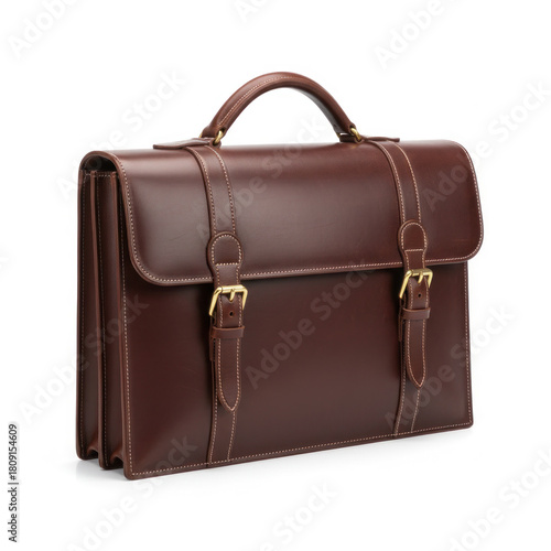 Briefcase a classic leather document bag for executives isolated white background