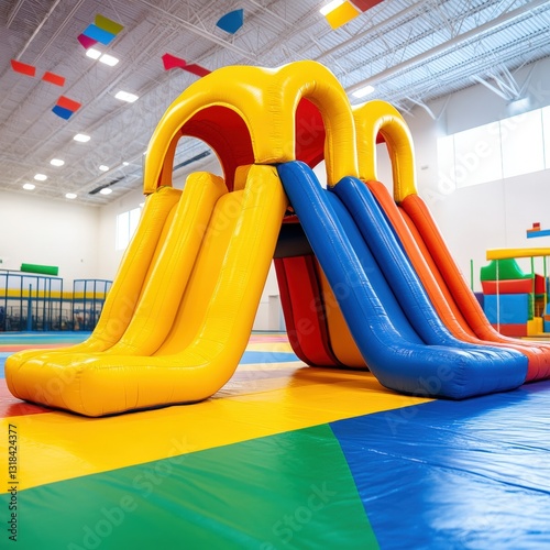 Bright and colorful inflatable slide set against a clear sky showcasing fun and adventure innovations for outdoor entertainment