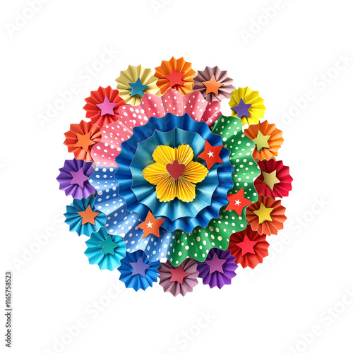 Bright and colorful paper rosettes in rainbow hues, layered with