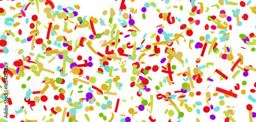 Bright and festive confetti falling on white. Perfect for party invitations, banners, and celebrations.