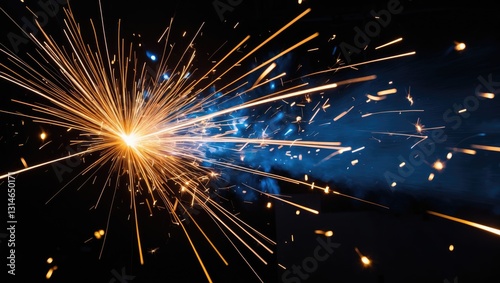 Bright blue and yellow sparks against a black background. Magical light.