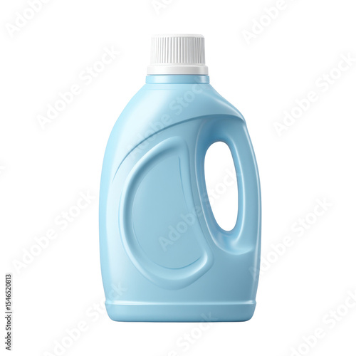 Bright Blue Plastic Bottle of Laundry Detergent with Screw Cap and Curved Handle on White Background Transparent background or png