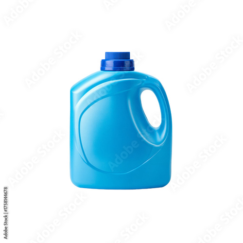 Bright blue plastic detergent container with handle isolated studio shot