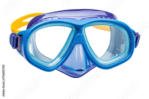 Bright blue snorkeling mask with clear lenses and adjustable strap for underwater adventures
