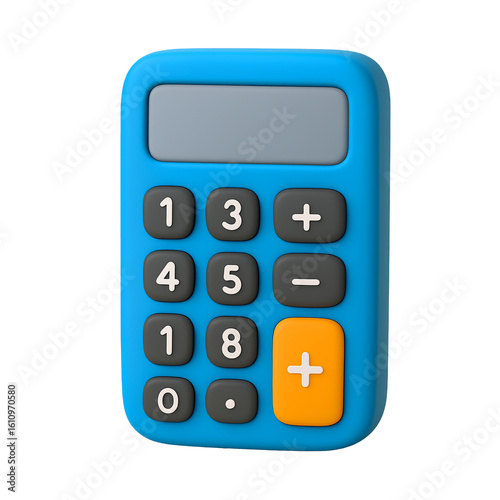 Bright blue toy calculator isolated on transparent background