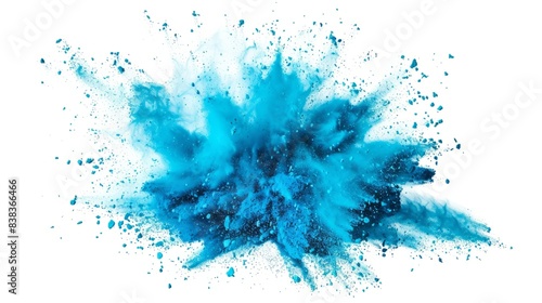bright cyan blue holi paint color powder festival explosion burst isolated. white background. industrial print concept background