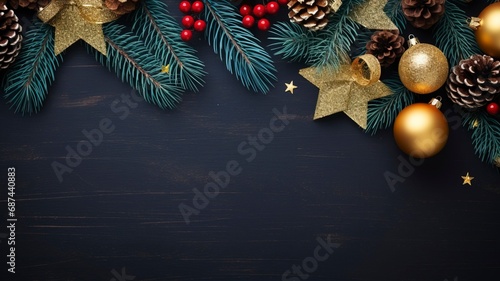 bright flat lay stock Christmas photo with copy space, realistic lighting, photorealistic made by generative ai