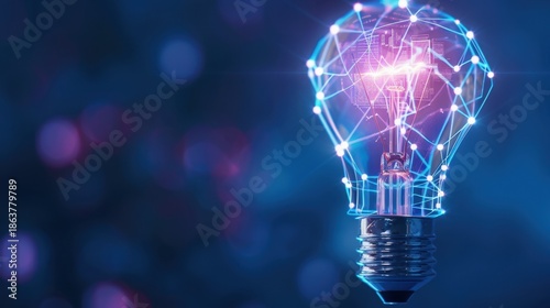 Bright Futuristic Light Bulb with Colorful Network Connection Glow on Blue Background