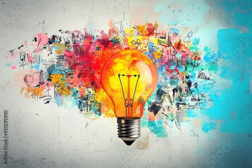 Bright light bulb symbolizing creativity and innovation against a vibrant, colorful graffiti background.