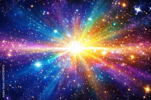 Bright light bursts across the colorful and starry cosmos beautifully