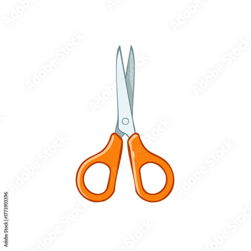 Bright orange handled scissors open for cutting crafts office work and school supplies