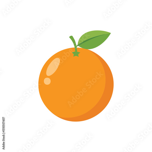 Bright Orange Illustration with Green Leaf on White Background.