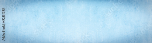 Bright pastel blue, colored painted paper texture background template pattern, long panoramic banner