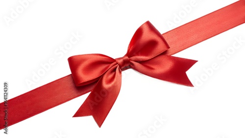 bright red color satin ribbon with bow PNG, cutout isolated on transparent background. Present, gift, discount, coupon concept graphic resource.