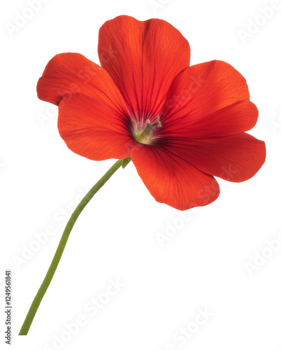 Bright red flower with a long green stem isolated