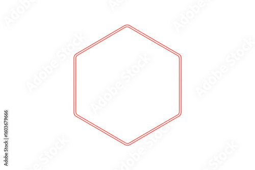 Bright red neon hexagon frame glowing on transparent background, perfect for modern and futuristic designs