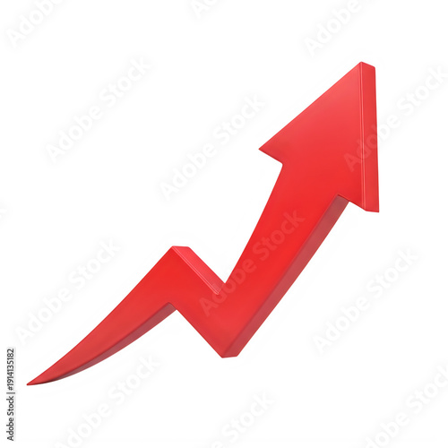 Bright red upward arrow indicating growth isolated on transparent background