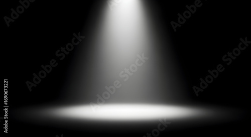 Bright spotlight illuminates an empty stage, perfect for showcasing your product or presentation, creating a dramatic and attention-grabbing visual.