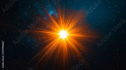 Bright starburst in dark cosmic space with glowing rays and nebula art.