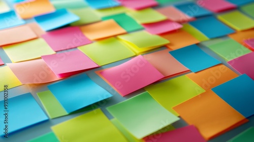 Bright sticky notes arranged in a grid