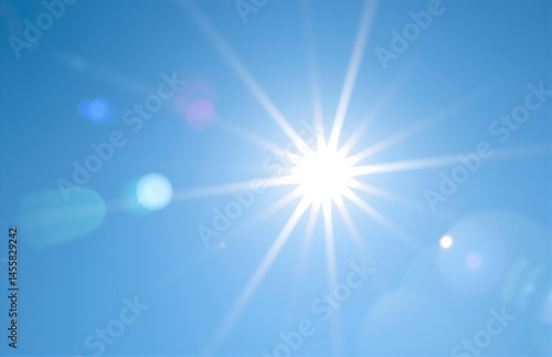 Bright Sun with Lens Flare in Blue Sky